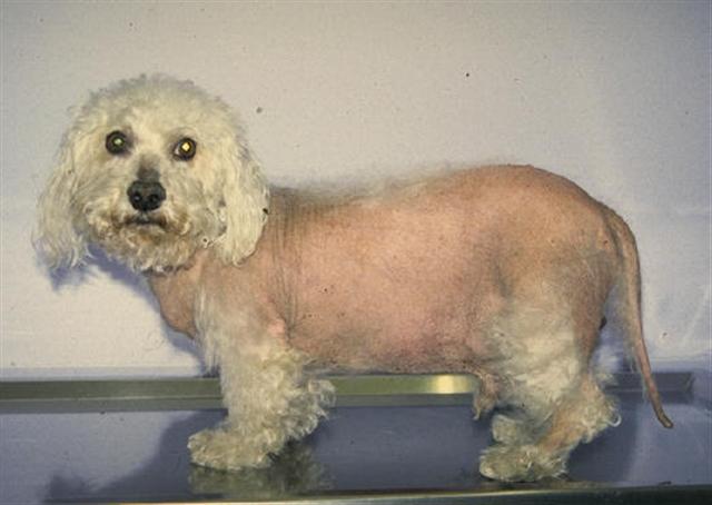Rụng lông ở chó cũng là một triệu chứng của bệnh Cushing. Bệnh Cushing là một bệnh mãn tính nghiêm trọng gây ra bởi sự mất cân bằng nội tiết tố xảy ra khi tuyến thượng thận của chó không còn hoạt động bình thường. Điều trị có thể liên quan đến phẫu thuật, nhưng thường giới hạn ở thuốc. Đôi khi, những con chó đã sử dụng corticosteroid trong một thời gian dài phát triển một dạng bệnh Cushing có thể đảo ngược có thể được chữa khỏi bằng cách giảm dần các steroid.